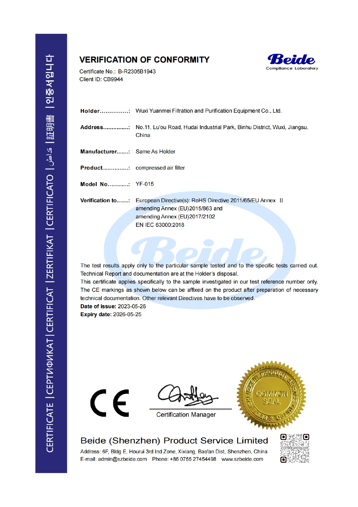 উক্সি ইউয়ানমেই ফিল্টারেশন অ্যান্ড পিউরিফিকেশন ইকুইপমেন্ট কোং লিমিটেড জিয়াংসু প্রদেশের উক্সিতে, সুন্দর তাইহু লেক লেকের পাশে অবস্থিত।